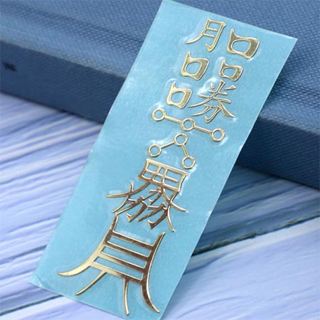 金屬貼符種類比較多,有發(fā)財符,佛字,萬字,賭勝符,護身符,六字真言等都可根據(jù)客戶的需要尺寸及樣式效果顏色定制生產(chǎn)。